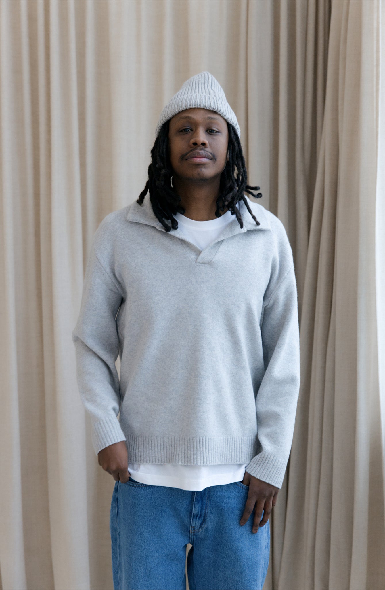 Le Polo FUJI Light Grey est une pièce intemporelle haute qualité : douce, aérienne et pleine de caractère. Idéal pour ceux qui cherchent un pull au toucher luxueux, sans compromettre sur le style ni le confort.