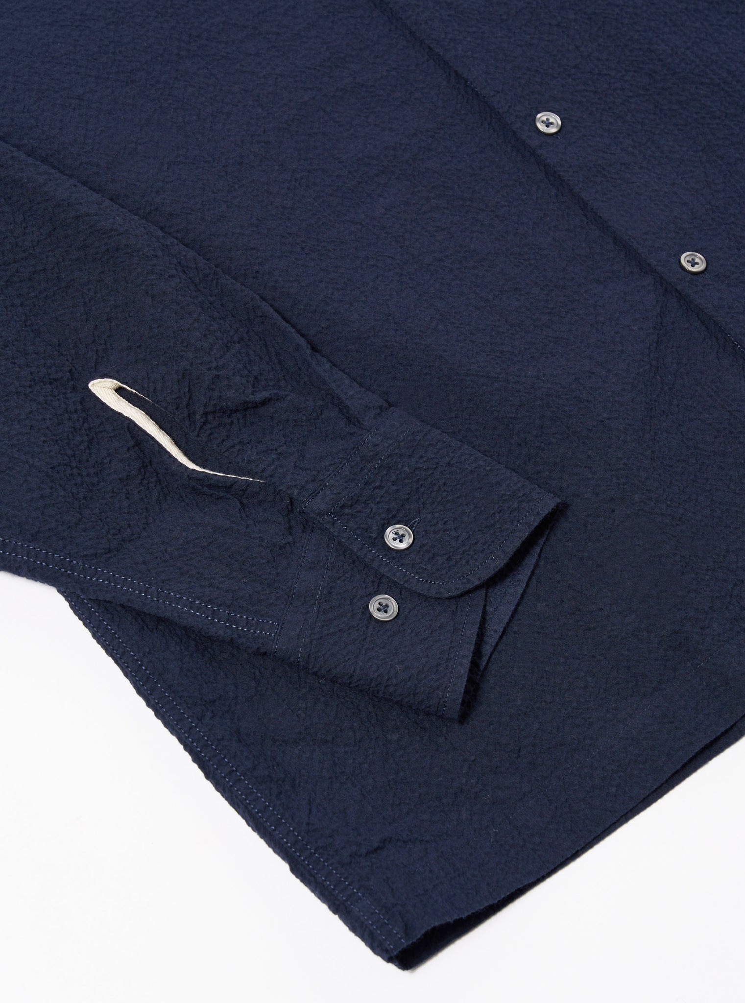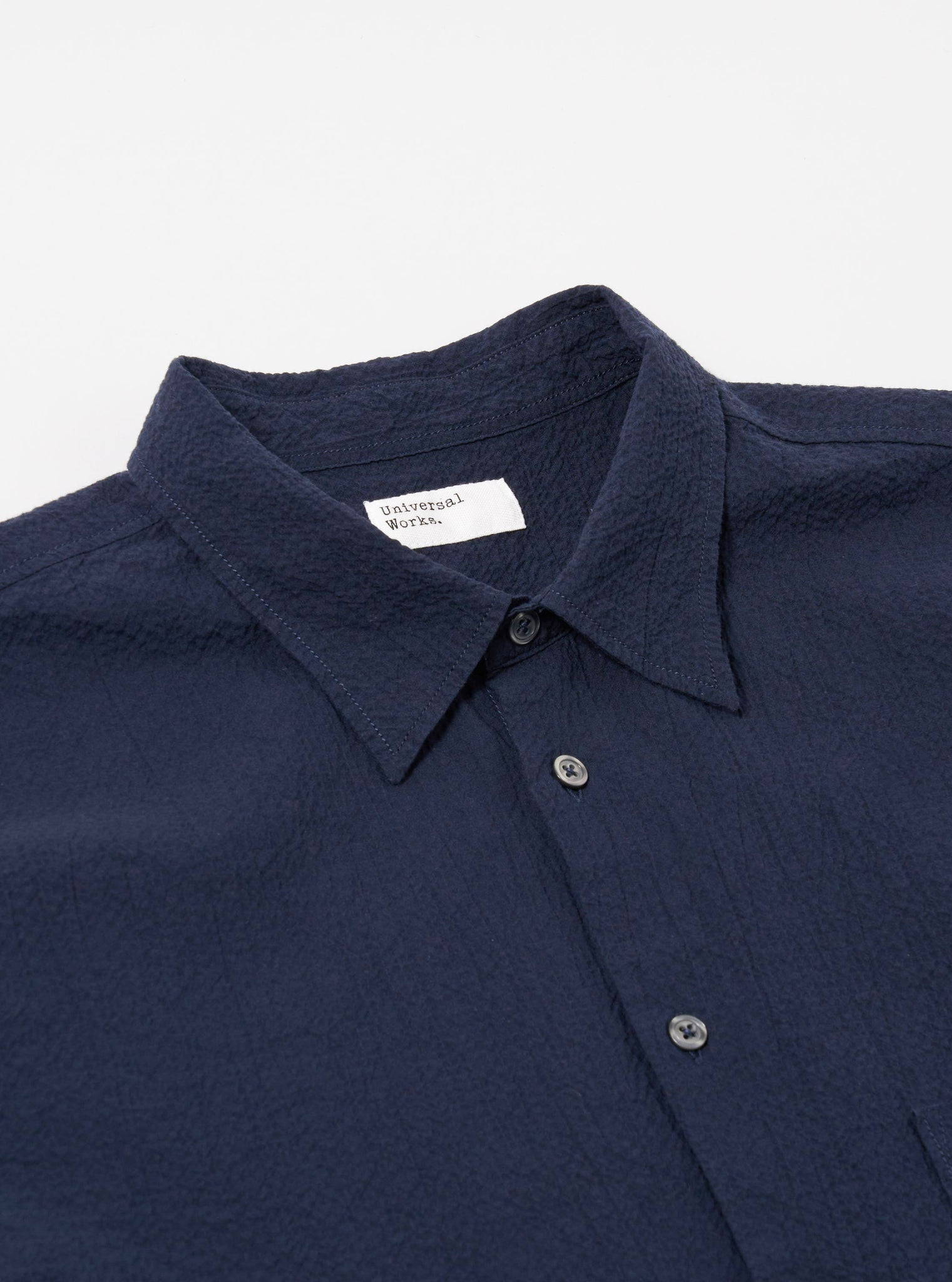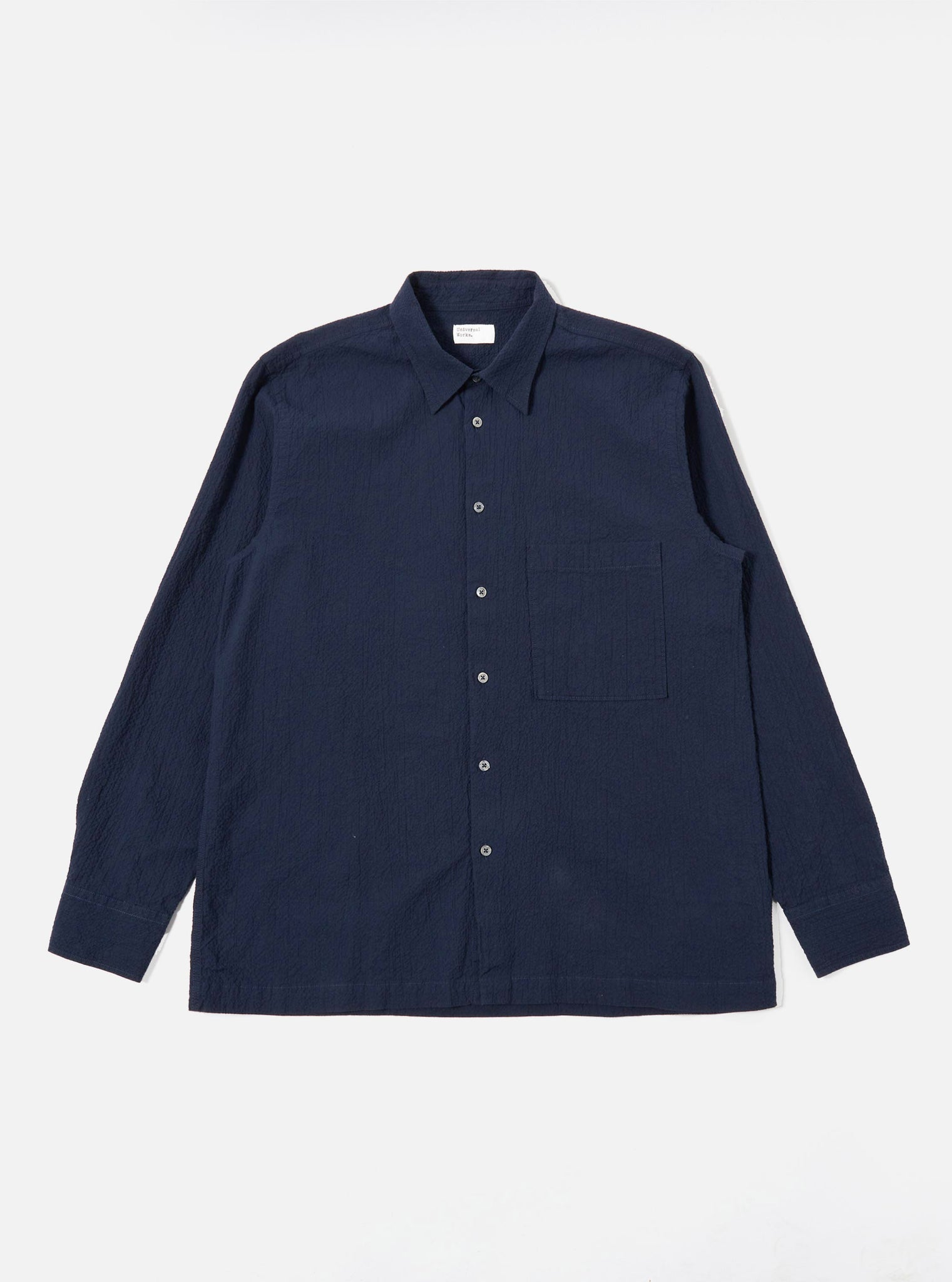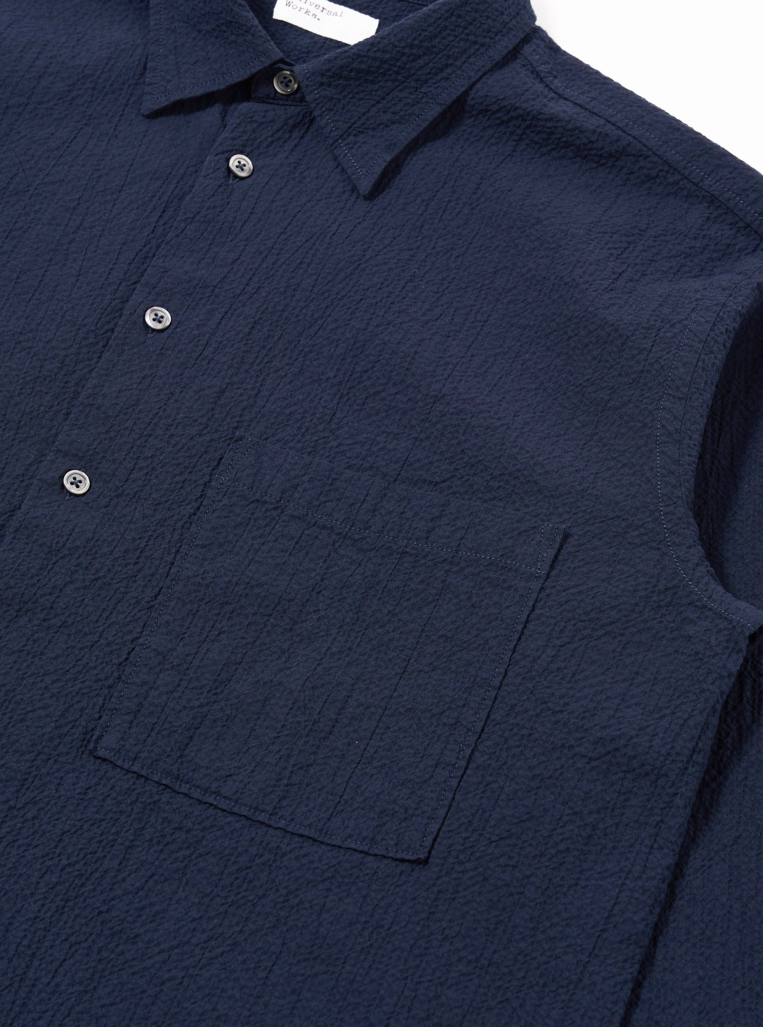 LUCKY SHIRT SEERSUCKER SHIRTING NAVY / UNIVERSAL WORKS