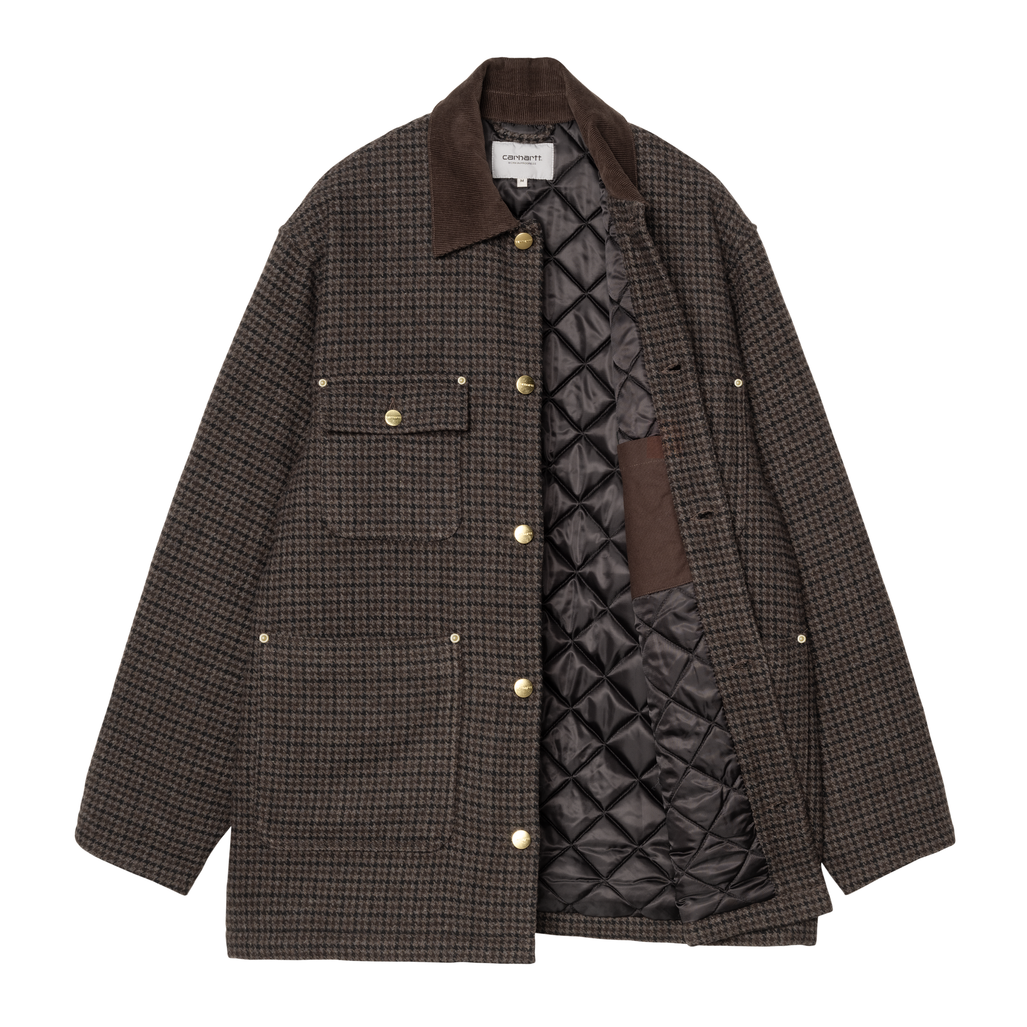 Affirmez un look à la fois raffiné et utilitaire avec cette veste Chore signée Carhartt WIP. Conçue dans un tissu épais à motif pied-de-poule (houndstooth) et dotée d’une doublure matelassée, elle marie la robustesse d’un vêtement workwear à une élégance urbaine contemporaine. Le coloris Vitola Heather lui confère une dimension subtile et facile à porter, idéale avec un jean brut, un chino ou même une tenue plus habillée.