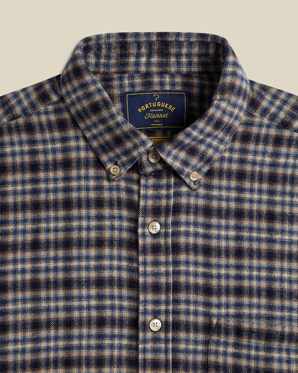 CHEMISE COTON MOTIF A CARREAUX BLEU MARINE PORTUGUESE FLANNEL